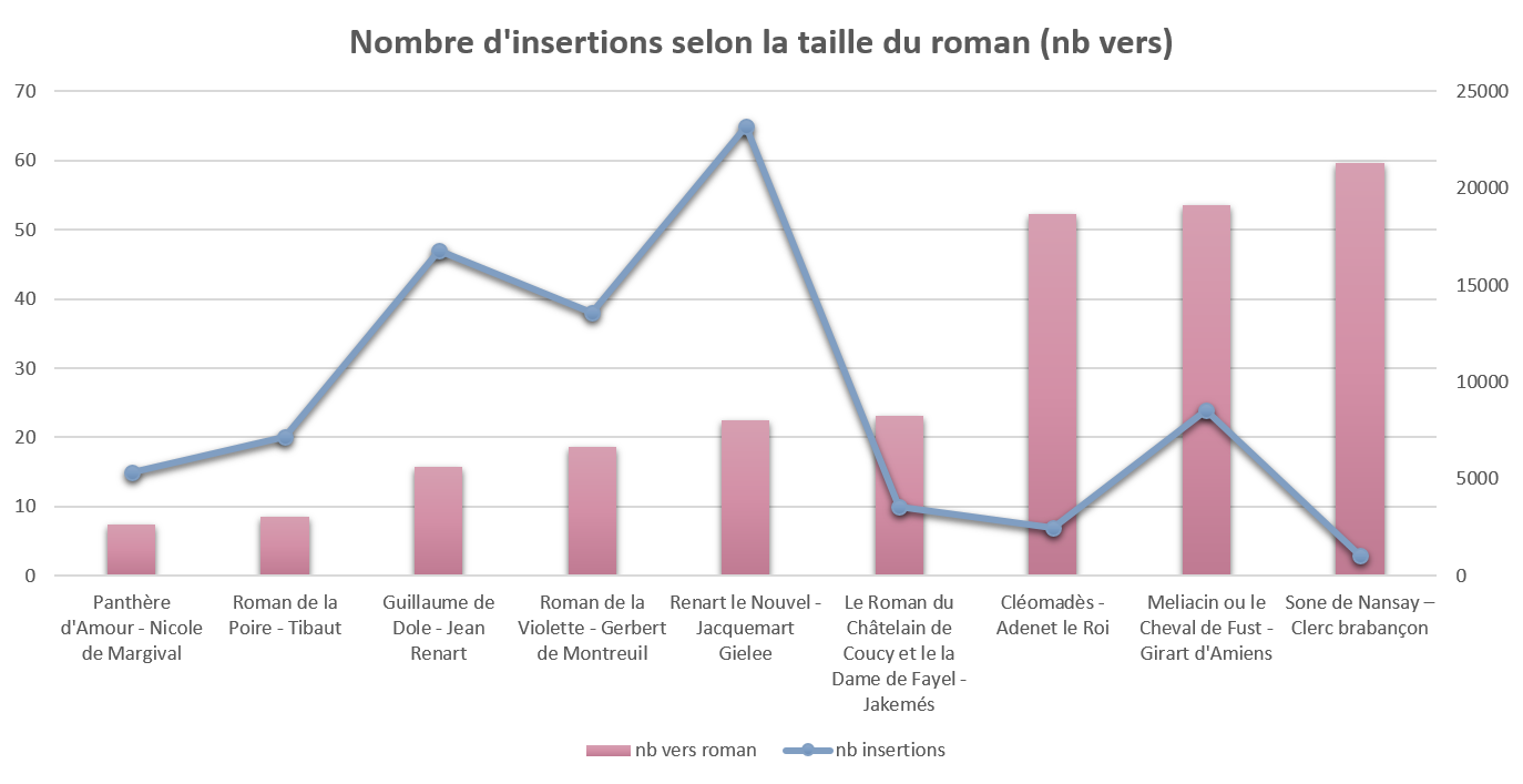 Fig. 1 : Nombre d’insertions lyriques selon la taille du roman