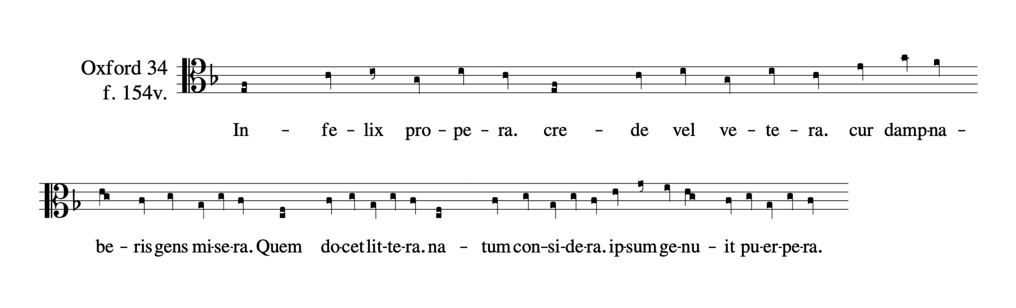 Fig. 2 : Reproduction de la dernière strophe de la séquence Lætabundus dans Oxford 34