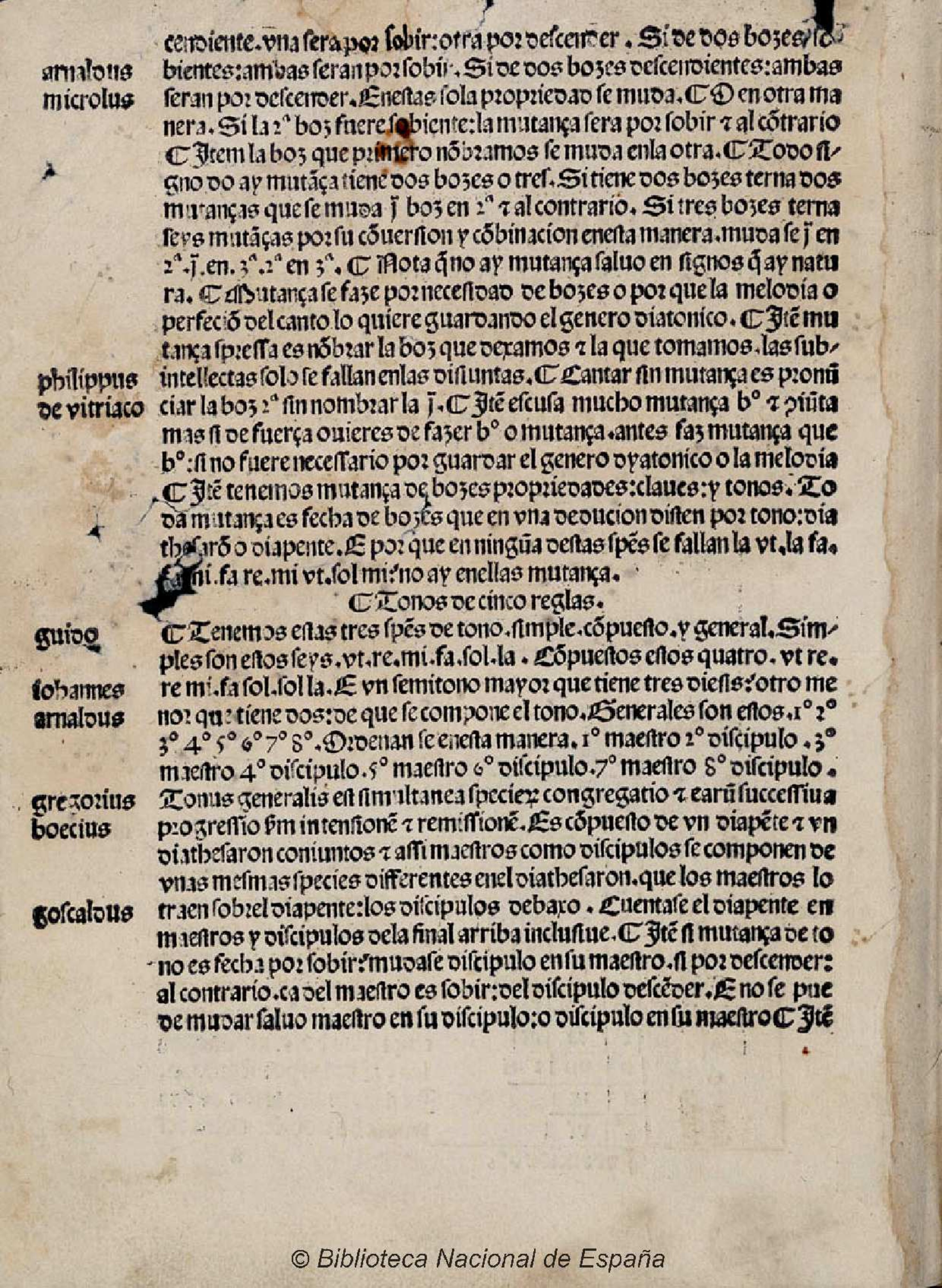 > Fig. 6. Domingo Marcos Durán, Lux bella seu Artis cantus plani compendium, Sevilla, Pablo de Colonia, Juan Pegnitzer, Magno Herbst, Tomas Glockner, 1492 (Madrid, BNE, Inc. 2165(3), fol. 1v). Durán’s Lux bella mentions many of the theorists listed in the last folio of gradual L.C. 238 (Lisbon, BnP, L.C. 238)