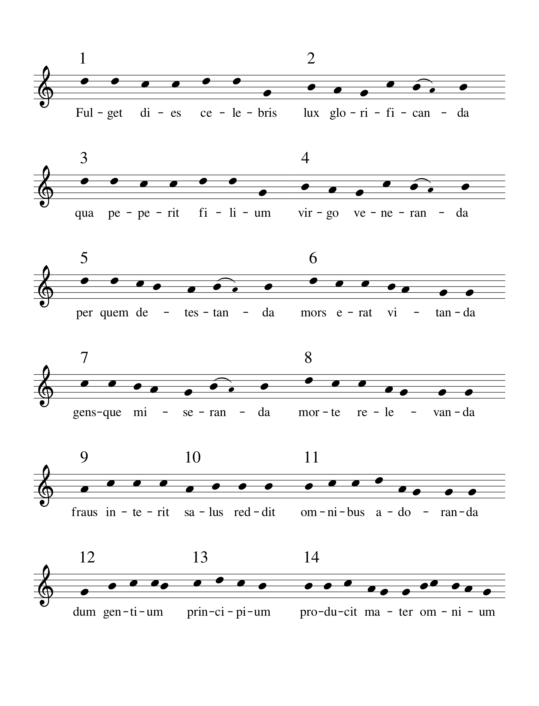 - > Ex. 5. Text and translation of Fulget dies celebris (BnF, lat. 3719c, fols. 43r-43v), stanza 1