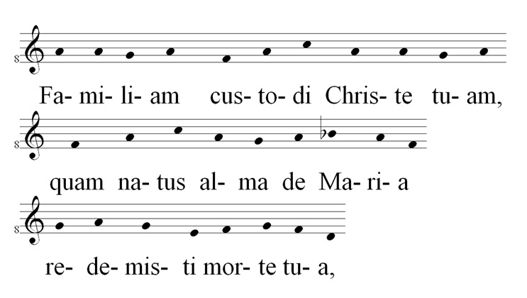 - > Fig. 19 - Le début de la prosule Familiam custodi Christe tuam tel qu’on le rencontre habituellement (CAO 6411 et HB 218)