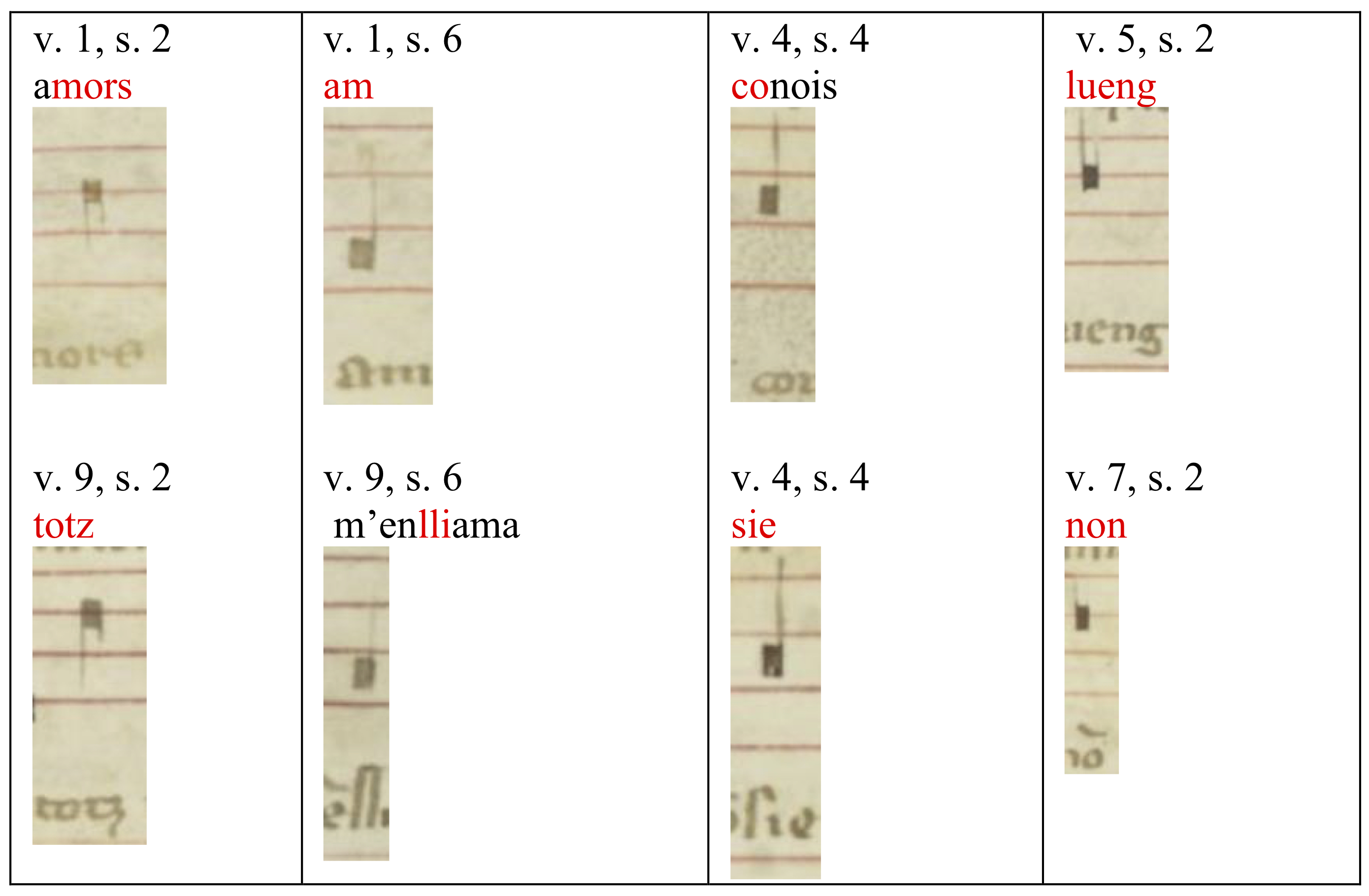 Tableau 7d - Pliques dans BdT 461.20a (Paris, Bnf, fr. 844, fol. 187r-v)